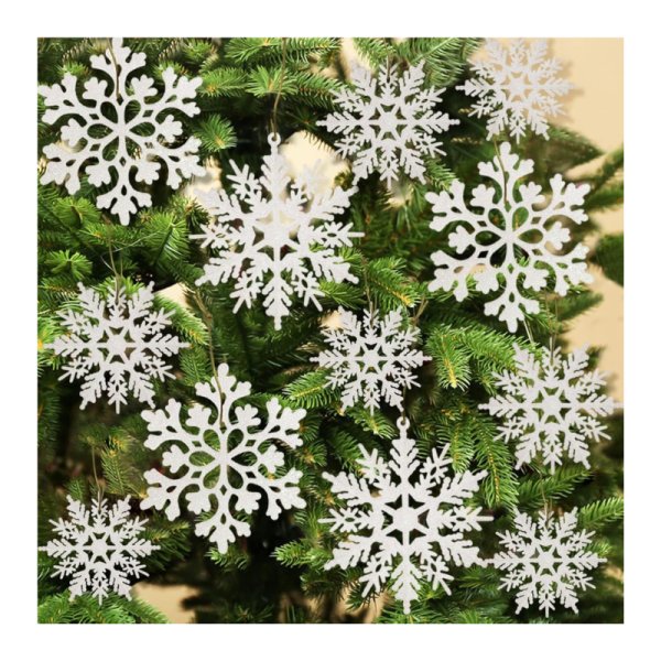 36pcs Snowflakes-Christmas Tree Decorations, Snowflake Ornaments for Tree, Plastic Glitter White Snow Flakes Ornaments
