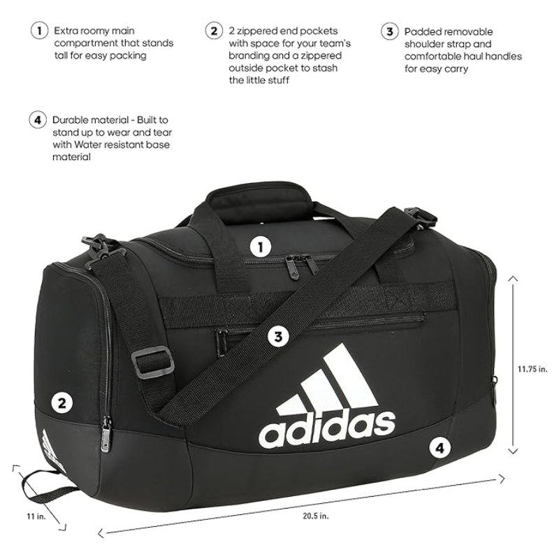 Water-resistant base material. Extra roomy main compartment that stands tall for easy packing. 2 zippered end pockets with space for your team’s branding and a zippered outside pocket to stash the little stuff. Durable material – built to stand up to wear and tear.