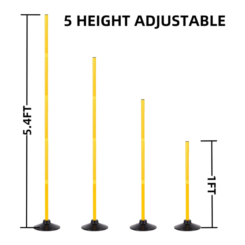 【Size】 5.4 ft,Each soccer agility pole is made up of 5 sections, ranging in height from 1 ft to 5.4 ft, to meet your requirements for different heights.Removable soccer training sticks, easy to store and carry, suitable for outdoor sports.