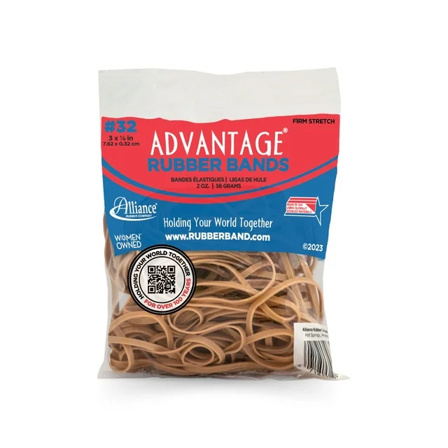 - • Brand: Advantage • Manufactured by: Alliance Rubber • Pack Weight: 2 oz of approximately 88 bands • Application/Usage: Industrial Applications, Office, Warehouse, Home • Features: Stretchable, Elastic • Color: Natural Crepe • Length: 3″ • Width: 1/8″