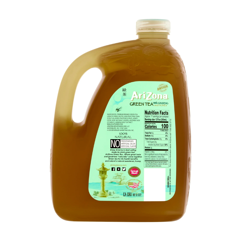 AriZona Green Tea..Where great taste and goodness “naturally” come together. Green tea for its health benefits, Ginseng for energy and nature’s natural sweetener, honey.