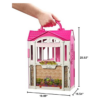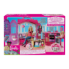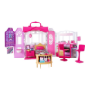 When a glam girl needs to relax, she needs a glam getaway! This amazing house is the perfect spot for a Barbie doll (sold separately) to refresh and recharge. Plus, a latch and carrying handle mean this getaway home is also the perfect play set to take on a getaway of your own! Unlatch and unfold to reveal a cute kitchenette, adorable bedroom, and en suite bathroom. Barbie doll can make a meal at the stove and dine at the counter on one of two included chair stools — so there’s room for a sister or friend! Accessories, like a teapot, cooking pot, and plates, make for a delicious meal! Plus, a unique feature keeps the pieces in place. The bed, with its soft goods blankets, looks completely cozy, while the modern pink en suite bathroom, a toilet, shower, and towel rack with a striped fabric towel make the perfect place to get ready, and the dr chandelier addresses up. Girls with a glam touch. I’ll love playing out fabulous stories in this glam home! The house includes a kitchenette with two stools; bedroom with bed, nightstand, and side table (that opens for storage!); en suite bathroom with shower and toilet; and lots of themed accessories that include cookware (a teapot and pan), dining pieces (plates, utensils and cups), bedroom accessories (alarm clock and pillow), bathroom items (hair dryer and perfume bottle) and a vase of flowers; doll not included. The house features a working door plus a latch and carrying handle to fold up for on-the-go fun!