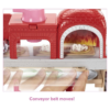• Use the included dough — white, beige, and red — to create pizza in a few, easy steps: place the beige and red dough into the pizza press and flatten for the pizza crust and sauce; move it along the conveyor belt by sliding the lever; and more