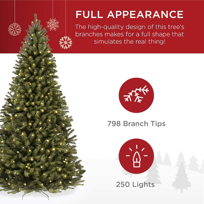 Best Choice Products 6ft Pre-Lit Spruce Artificial Holiday Christmas Tree w/ 250 Incandescent Lights, 798 Branch Tips, Easy Assembly, Metal Hinges & Foldable Base
