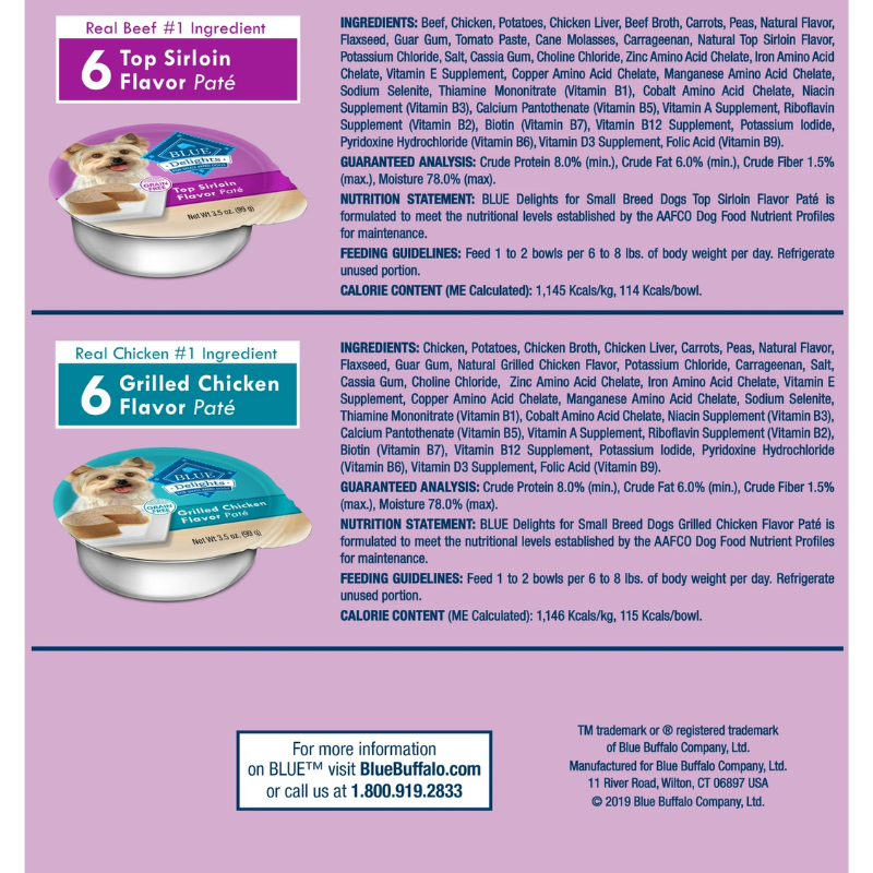 Blue Buffalo Delights Small Breed Wet Pate Dog Food Cups Grilled Chicken & Top Sirloin 3.5oz 12 Pack