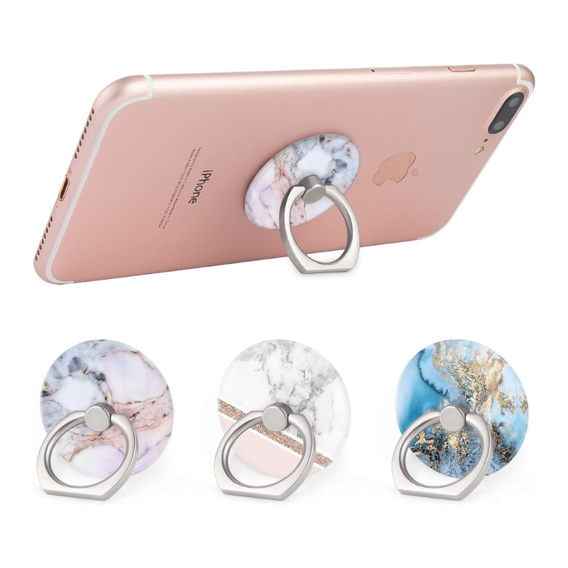 Bonoma Cell Phone Ring Holder Stand, 360 Rotation 3-Pack Universal Smartphone Ring Grip Stand Compatible with Smartphones and Tablets Marble