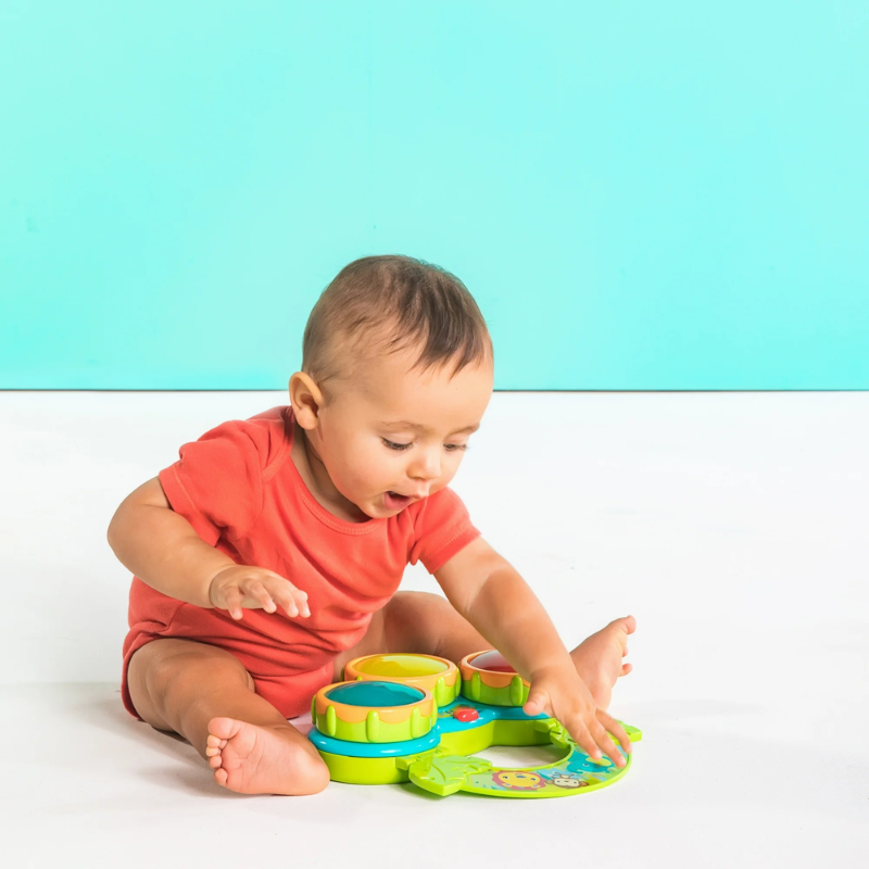 Bright Starts Safari Beats Musical Drum Toy with Lights, Ages 3 Months +, Infant and Toddler, Unisex