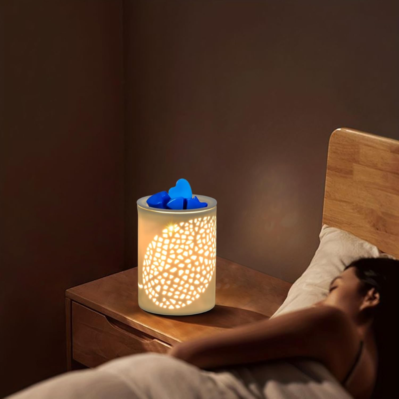 Measuring 3.9″x3.9″x5.5″ H and 1.1LB, this electric wax melter simply plugs it into the power, flips on the switch. The soft glow of the halogen heating bulb will set the mood and fragrance of a burning candle, Flameless wax burner, soot or other contaminants. This classic white wax burner boasts an embossed leaf pattern for decoration and texture, beautiful applies to any modern home, hotel or various special occasions, aromatherapy, perfect for living room, study, bedroom, office , gym, spa. studio or outdoor decoration; a work of art that looks like. To combine with your favorite wax cubes, candle tart, aromatic wax melts and essential oils, to perfume your home and delight you and your guests; It is also a good way to cover the smell of tobacco, pet urine, garbage and unpleasant odors from the bathroom or basement. Scented wax melts and essential oils are not included.