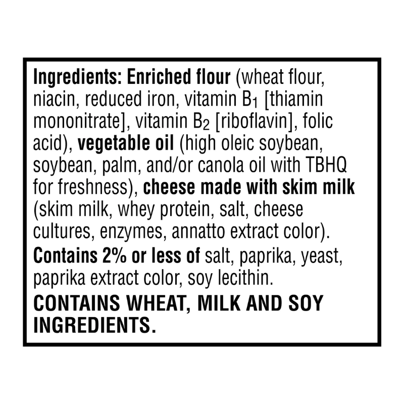 • Made with 100% real cheese aged for a bold taste; Kosher Dairy; Contains wheat, milk, and soy ingredients