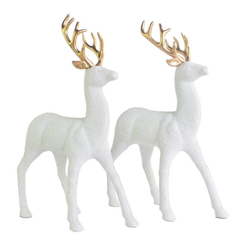 These set of 2 adorable Christmas white reindeer statues decor will help you make a complete winters scene on dining table, cabinets or under a christmas tree, bring festive cheer to the holiday season! Unlike other too big or too small sculptures, our standing reindeer statues with the size of 9″ L x 12.6″ H, perfectly integrated with most home decorations that can be used in any room of the house as an elegant focal point for your indoor Christmas décor, such as bookshelf decor, dining table decor, christmas tree decor, etc.