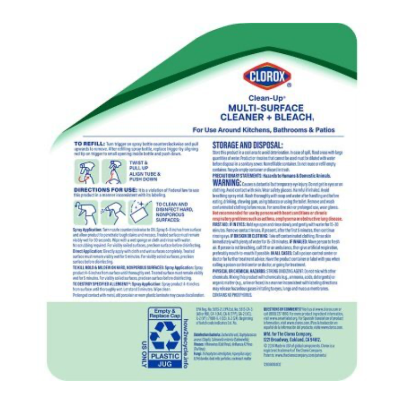 - Clorox Cleaner with Bleach removes tough stains, dirt, grease and grime with a fresh fragrance