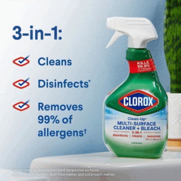 - Specialized bleach cleaner kills viruses that cause colds and flu