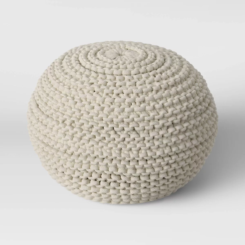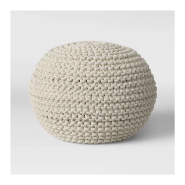Flaunt cozy, laid-back style with this Cloverly Chunky Knit Pouf from Threshold™ lending a fine combination of simple elegance and cool comfort. Crafted with a chunky knit pattern on the exterior for textured appeal, this round pouf comes with a soft poly-bead fill, offering a comfy seating experience. This pouf works great as an extra seating option when needed or can double as a cozy footrest when you’re looking to put your feet up as you unwind. Place it in front of your favorite armchair or tuck it away in the corner for a restful reading nook.