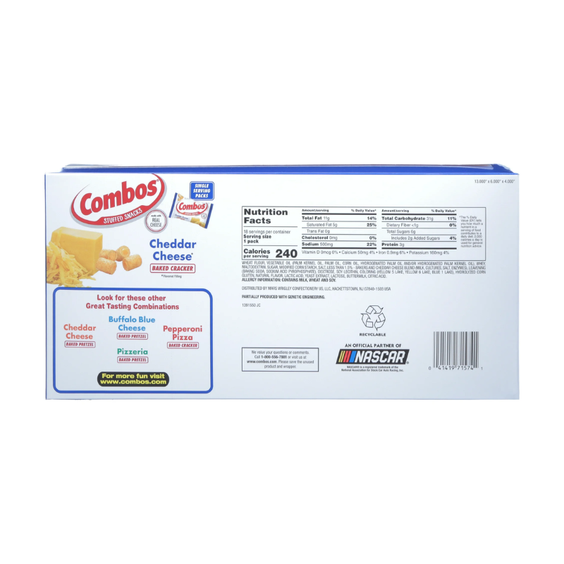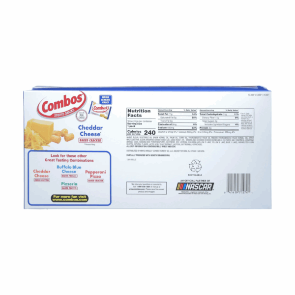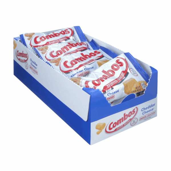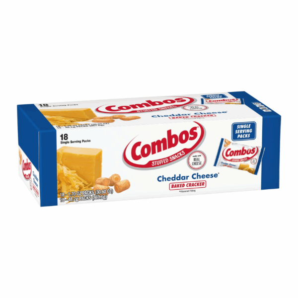 - Contains one (1) 18 ct box of 1.7-ounce bag of COMBOS Cheddar Cheese Baked Cracker Snacks Bulk Pack