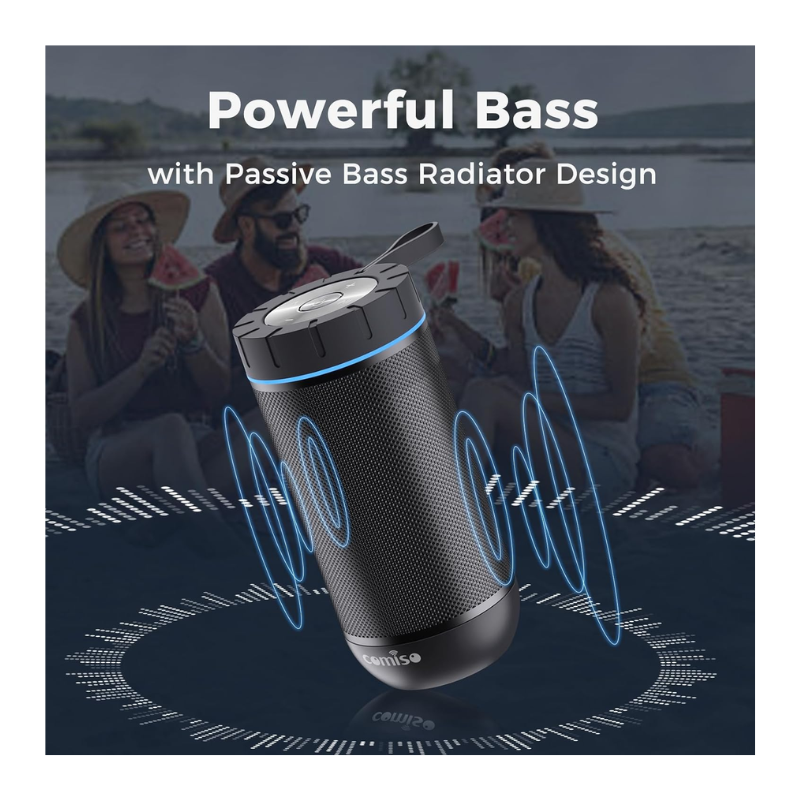 [ PUNCHY BASS & 360° SURROUND SOUND ] For COMISO blue tooth speaker, distinct mids and highs from our two precision acoustic drivers delivers excellent stereo sound and enhanced bass from our proprietary passive bass radiator design, helps the speakers deliver transparent bass with great extension, while reducing distortion. So you can fill your room with rich, full-bodied sound. Comiso speakers emit exceptional 360° audio.