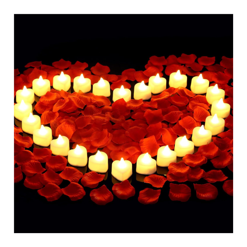 Romantic Night Decor Set – You will get 2000 pieces beautiful artificial realistic rose petals and 24 pieces heart shape LED candles, Sufficient quantity for you to create romantic night for him/her