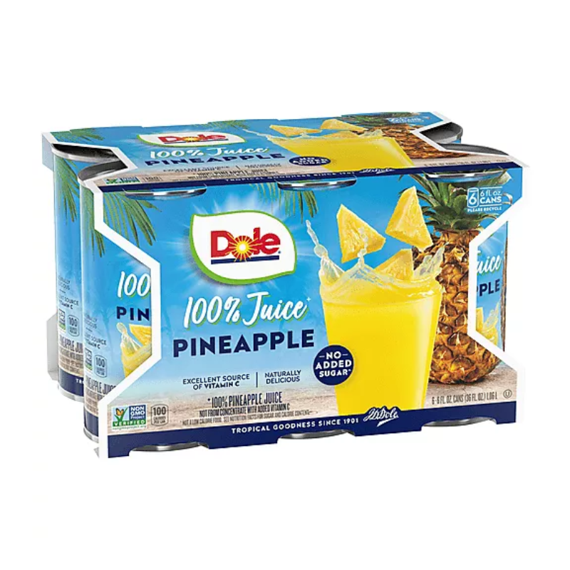 Pineapples are a symbol of hospitality, tropical vacations and fun, so it makes sense Dole would take this yummy goodness and put it in a can. Dole Canned 100% Juice is refreshing, exotic and a delicious alternative to other juices. Dole Juice is 100% juice that is an excellent source of Vitamin C and a good source of vitamins A & E.