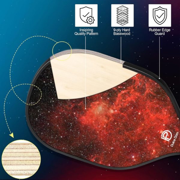 【High-Quality Material】DULCE DOM pickleball paddle is made of high-quality 9-ply hard basswood, and the edge of the paddle is reinforced with protective rubber. USPA Pickleball certification ensures stronger and longer life. Each pickleball paddle is optimally weighted at 10.58 oz for the perfect balance of swing speed and power.