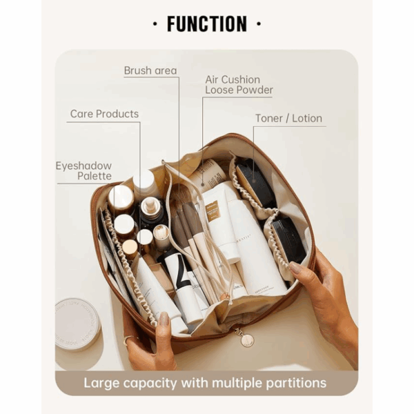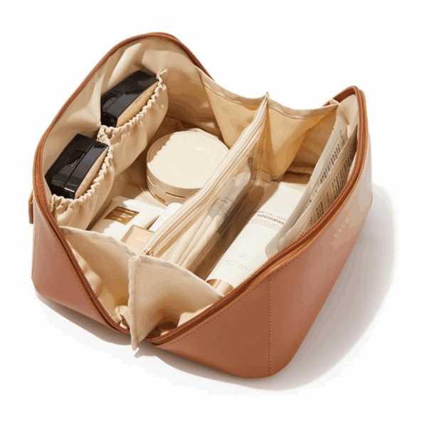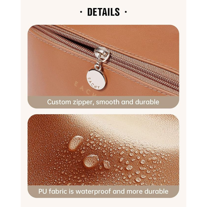 - Quality Materials: Crafted from smooth, waterproof PU leather that’s easy to clean, with a durable polyester lining. The makeup brush compartment is made from clear, waterproof TPU to keep brushes neatly stored and visible.