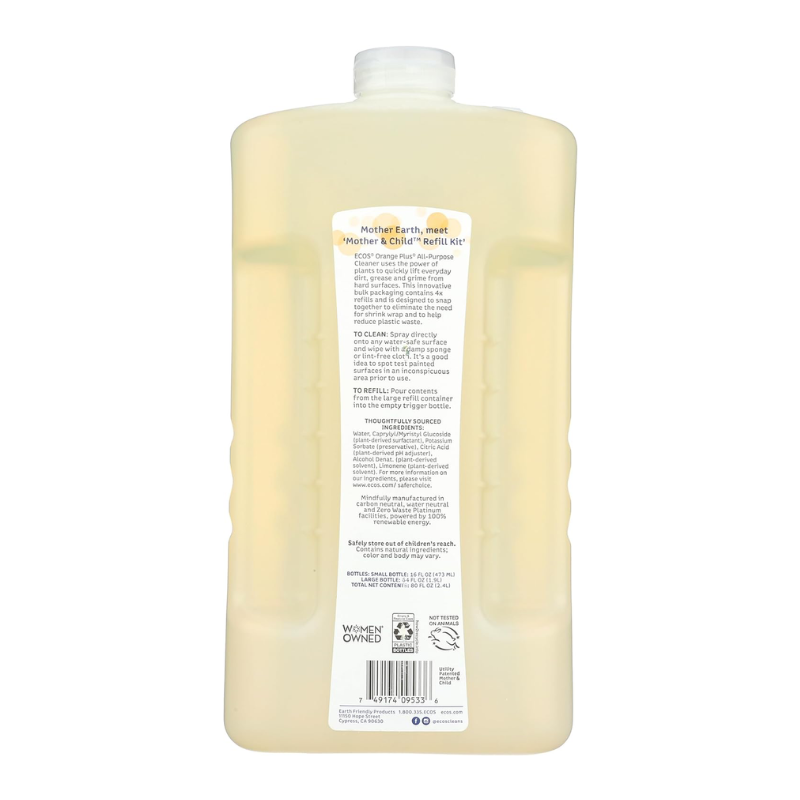 ECOS Non-Toxic All-Purpose Cleaner, Orange, 1 Small and 1 Large 80 oz Bottles