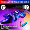 LED RC Stunt Car for Kids: Drive the Tornado RC car upside down or downside up; this remote control car features 2-sided off-road driving, bright LEDs, and tough all-terrain rubber tires.