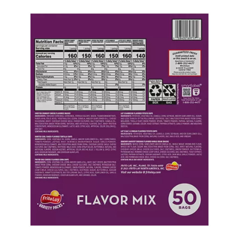 Frito-Lay’s Flavor Mix Variety Pack is the perfect variety for any occasion. Provide the perfect portion size and variety to keep your customers, colleagues and family happy. From store shelves to the pantry to the lunch box, all you have to do is grab a pack and go.