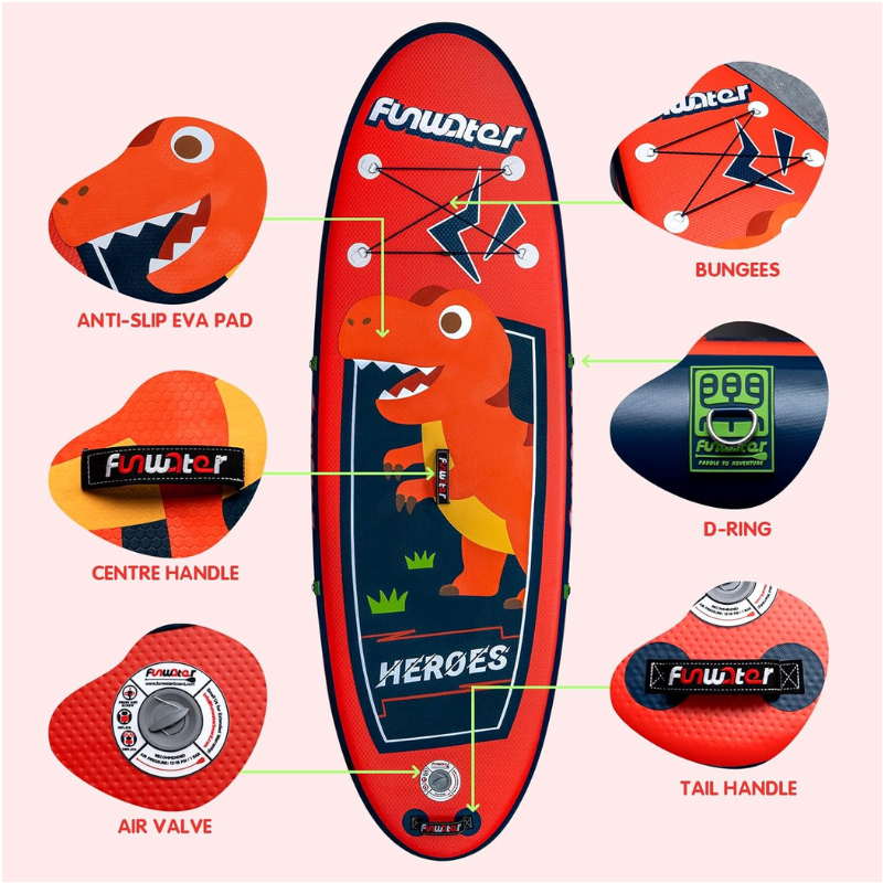 Specifically designed for kids, this FunWater stand up paddle board is made of ultra-lightweight premium double-wall PVC that is 35% lighter than comparable products, yet maintains its durability and longevity. With industry-leading dimensions of 7’11” x 30” x 4” and a weight limit of 170 LBS, the kids paddle board is ready to to tackle any challenge on the water. With a unique and fun design and a full range of quality accessories, it makes an ideal gift for your child.