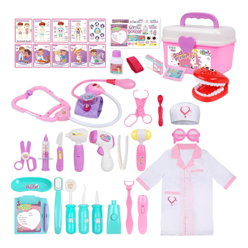 Gifts2U Doctor Kit for Toddlers 3-5, Medical Pretend Play Toys with Gift Case, 42 Piece Dentist Playset Kit for Kids (Pink)