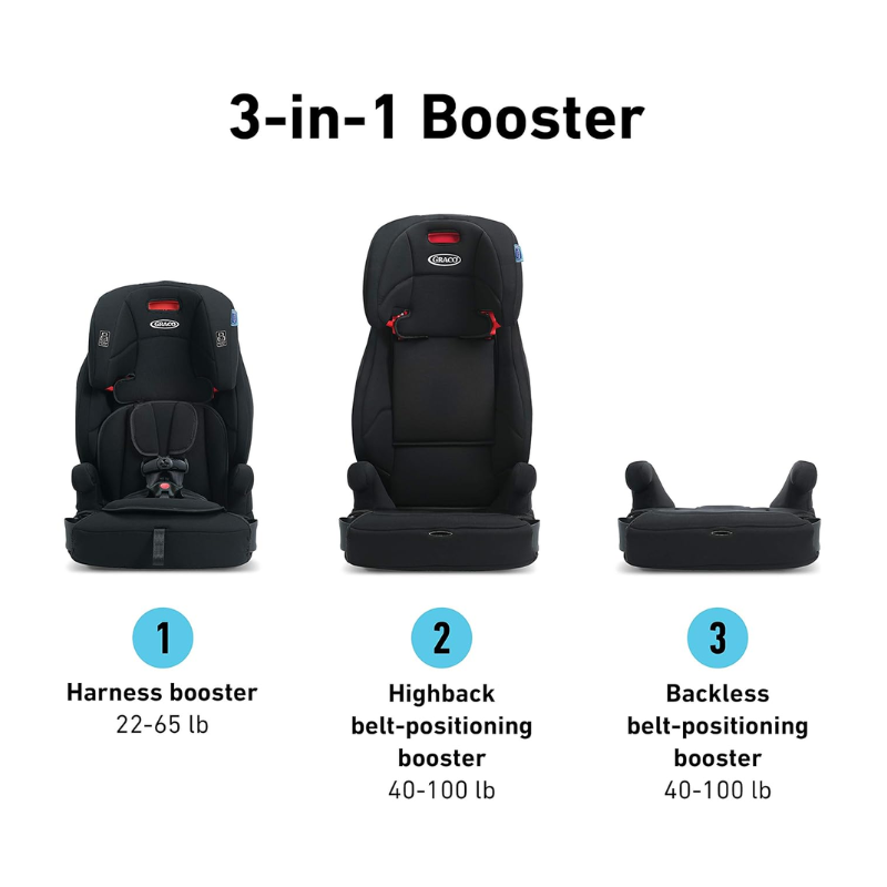 The Graco® Tranzitions™ 3-in-1 Harness Booster is designed to grow with your child and go with you, wherever your journeys take you—from car to carpool and beyond.
