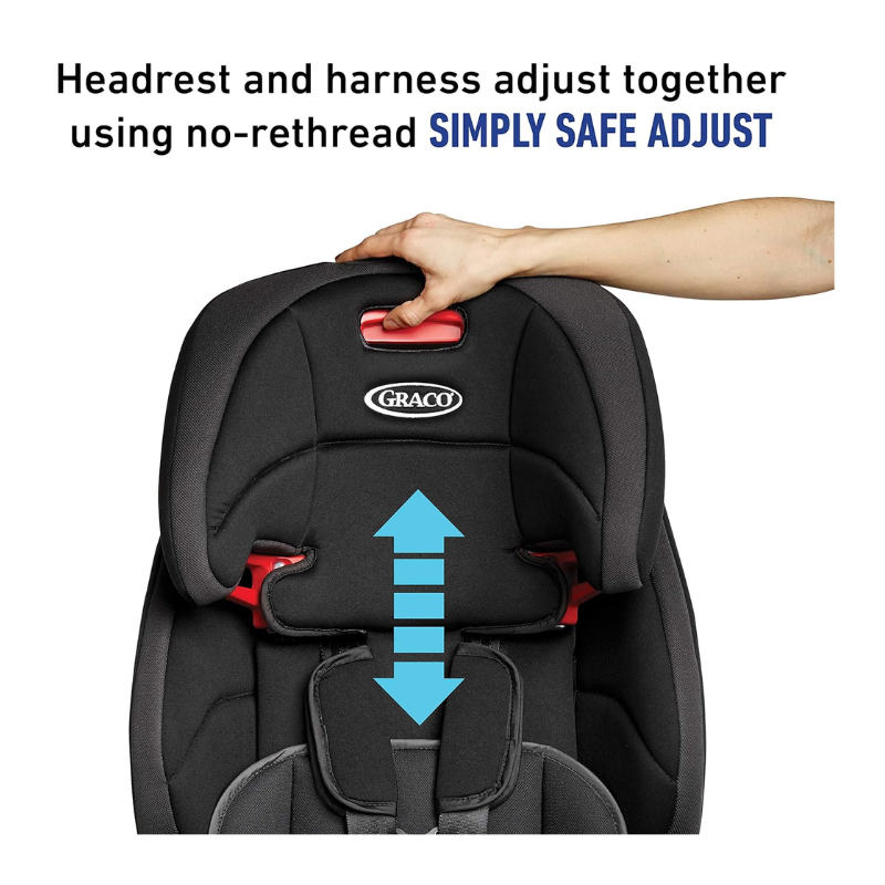 This lightweight car seat transitions seamlessly from harness booster (22-65 lb) to highback booster (40-100 lb*) to backless booster (40-100 lb) and features the Simply Safe Adjust™ Harness System, which adjusts your harness and headrest to 8 height positions, with no rethreading. It features two removable cup holders to keep your child happy, and a machine washable seat pad, body insert, and harness covers.