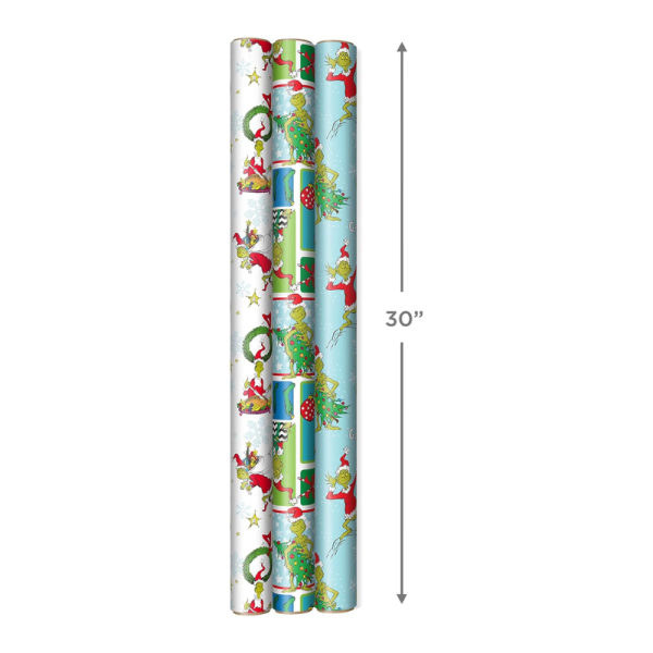 Hallmark Dr. Seuss Grinch Wrapping Paper for Kids (3 Rolls: 105 Sq. Ft. Ttl) for Christmas