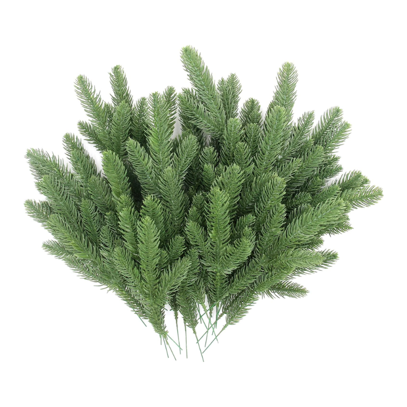 Hananona 50 Pcs Artificial Pine Branches Green Plants Pine Needles DIY Accessories for Garland Wreath Christmas