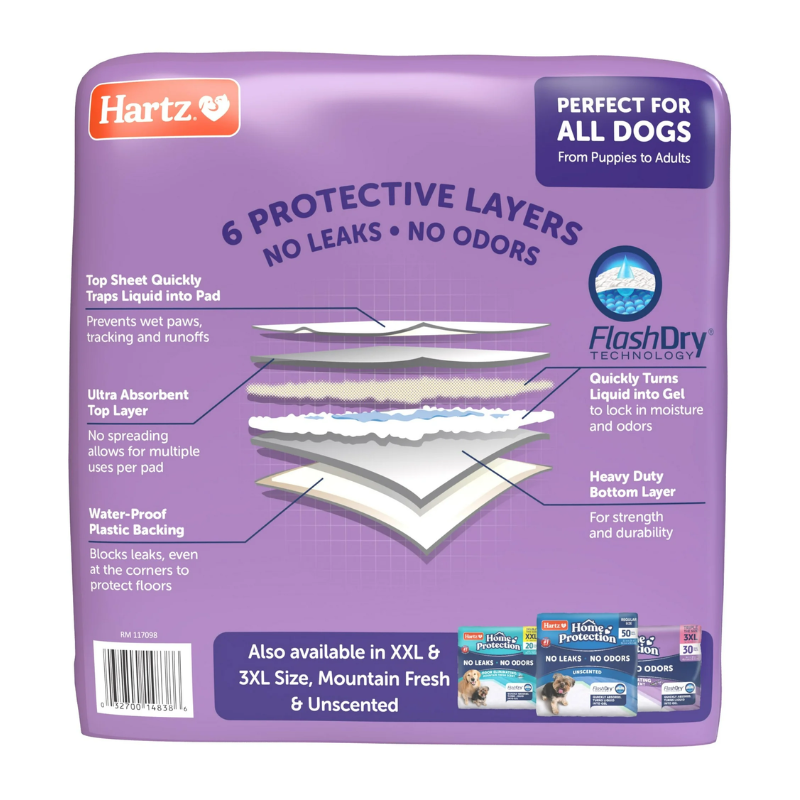 Hartz Home Protection Lavender Scent Odor-Eliminating Dog Pads, Regular Size, 21 in x 21 in, 50ct