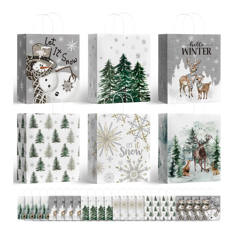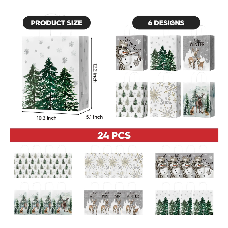 Stylish & Festive Designs : Celebrate the holiday season in style with our Christmas gift bags. Available in a range of appearances and styles, these bags add a festive touch to your gifts and are sure to bring a smile to your loved ones’ faces.