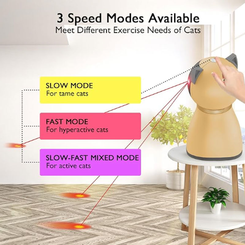 Real Random Interactive Cat Laser Toy: Dual motor control for horizontal rotation and vertical swinging of the laser head. Stimulates the hunting instinct of pets, keeping them consistently interested. Other automatic laser toys with only circular patterns can easily bore pets. For a better user experience, it is recommended to place the toy on a table at a height of 8-35 inches