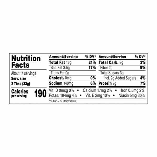 • A gluten-free peanut butter that has 7g protein (7% DV) per serving*