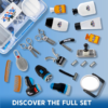 Our pretend play set includes 23 Pcs barber shop pretend play kit for boys which includes a Shaver, Hair Trimmers, Scissors, Razors, a Hairdryer, a Mirror, a Comb, Bottles, a Cleaning Brush, and other boy salon styling accessories for your kid.