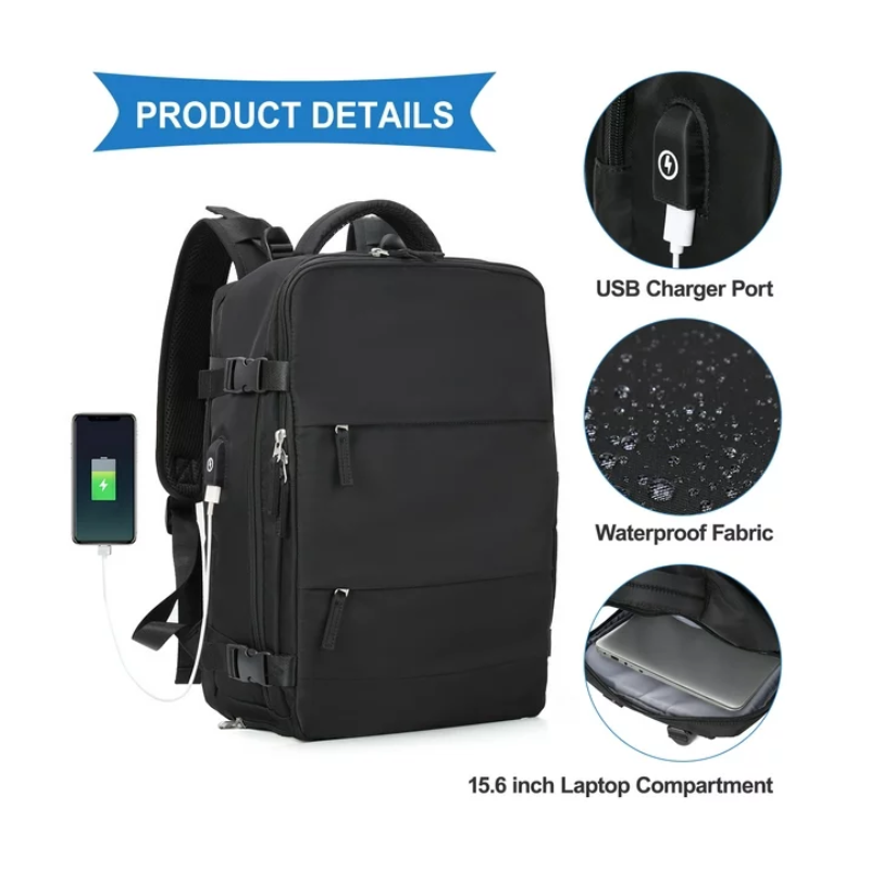 Large Travel Backpack Women, Carry On Backpack,Hiking Backpack Waterproof Outdoor Sports Rucksack Casual Daypack School Bag Black