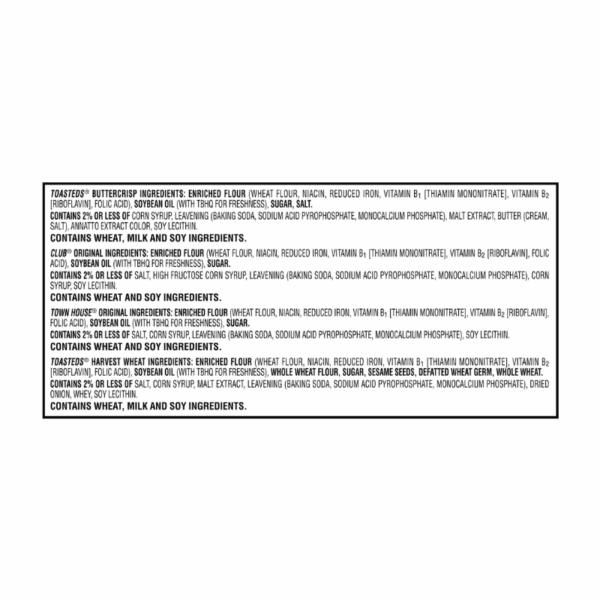 • A classic collection of four delicious varieties; Variety pack includes Toasteds Buttercrisp and Harvest Wheat, Club Original, and Town House Original