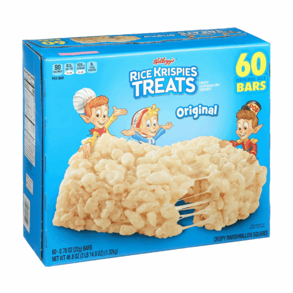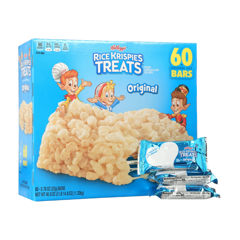 Indulge in the sweet taste of nostalgia with these marshmallow snacks. Each 60-count box of Rice Krispies Treats squares comes packed with enough 0.78-ounce bars to satisfy a crowd. Individually wrapped for easy display and sharing, these treats are a convenient way to enjoy dessert without the need for plates or utensils.