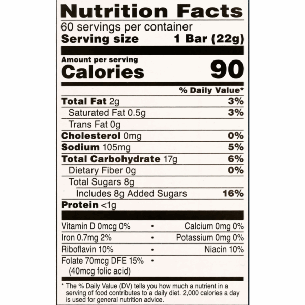 • Contains saturated fat (0.5gram), sodium (105mg), and total sugars (8gram).