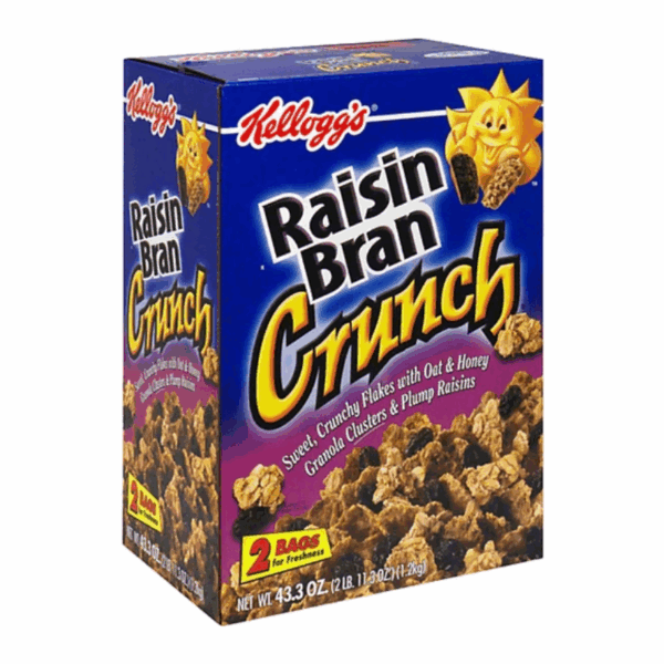Just as nutritious as it is delicious, this heart-healthy* breakfast cereal is low fat and contains a good source of fiber and essential vitamins and minerals to help you start your day off strong. Whether you enjoy your Raisin Bran Crunch in a bowlful at breakfast time, as an afternoon snack, or straight from the box after your workout, Kellogg’s Raisin Bran Crunch Cereal lets you rise, shine and make the most of your day.