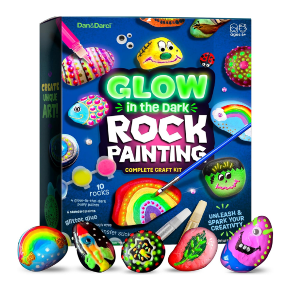 Let It Glow: The main attraction is the puffy glow-in-the-dark paints. When the lights go out, these paints will light up and provide beautiful designs. Imagine the look on your child’s face as they watch their rock designs come to life in the dark!