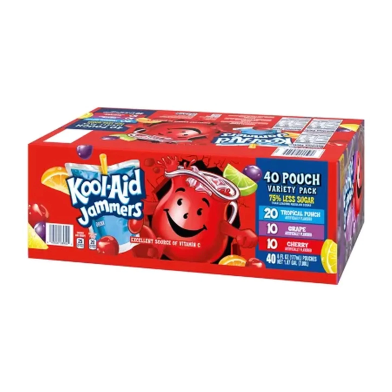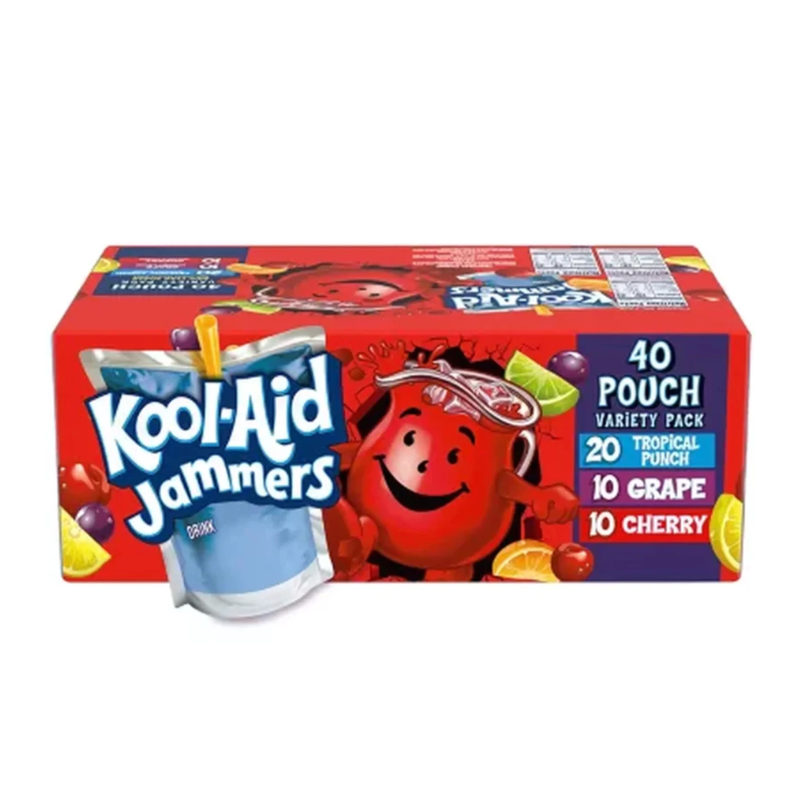 Fun tastes so good with Kool Aid Jammers artificially flavored juice box Variety Pack! This delicious variety pack contains 20 Tropical Punch, 10 Cherry and 10 Grape flavored juice pouches providing options for all flavor lovers.
