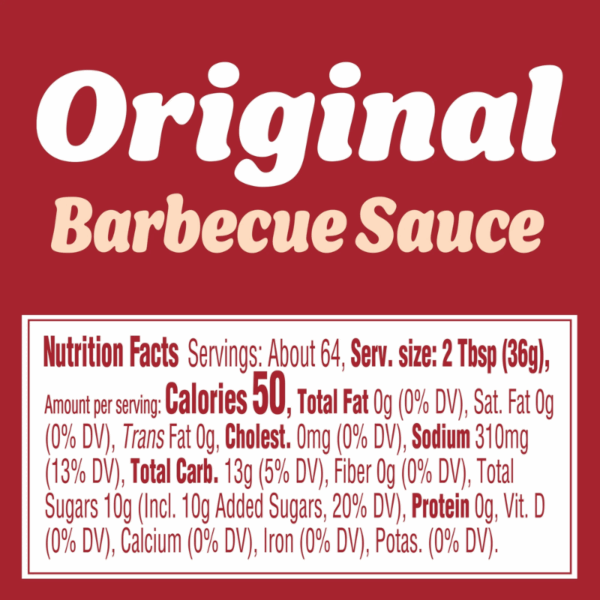 This BBQ sauce is a great additional to all your favorite appetizers and entrees. Try using it as a BBQ sauce for pork or dipping sauce for barbeque chicken wings and nuggets. This original flavored BBQ sauce is packaged in a squeezable 82.5 ounce bottle to preserve flavors.