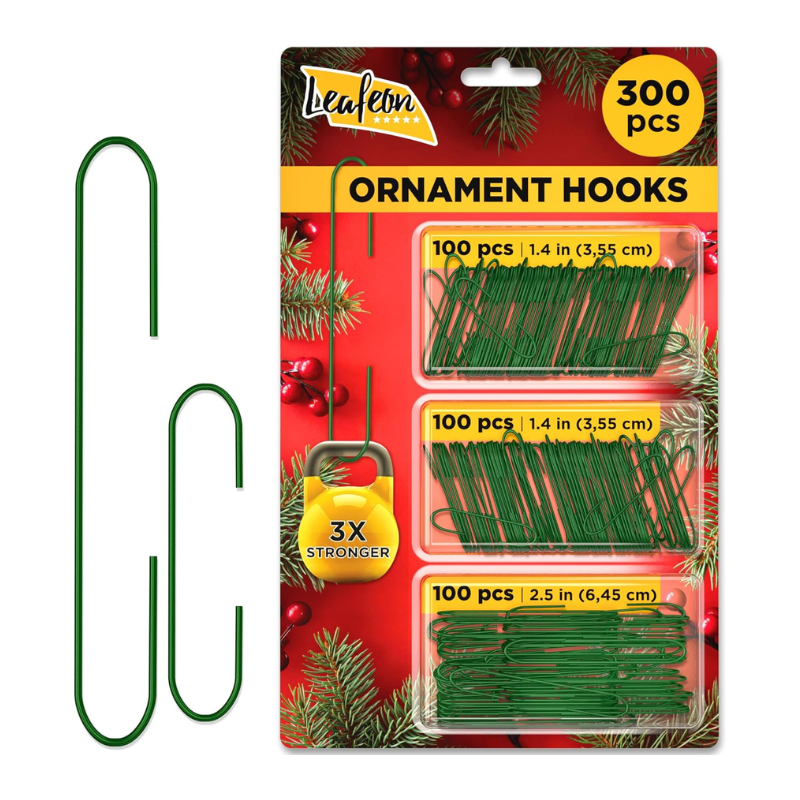 🎄 INCLUDES: 300 Green Metal Ornament Hooks is a great amount for any Christmas decoration process – 2 Sizes Included: 200 pcs ¼” hooks, 100 pcs ½” hooks – Use for both small and large ornaments.