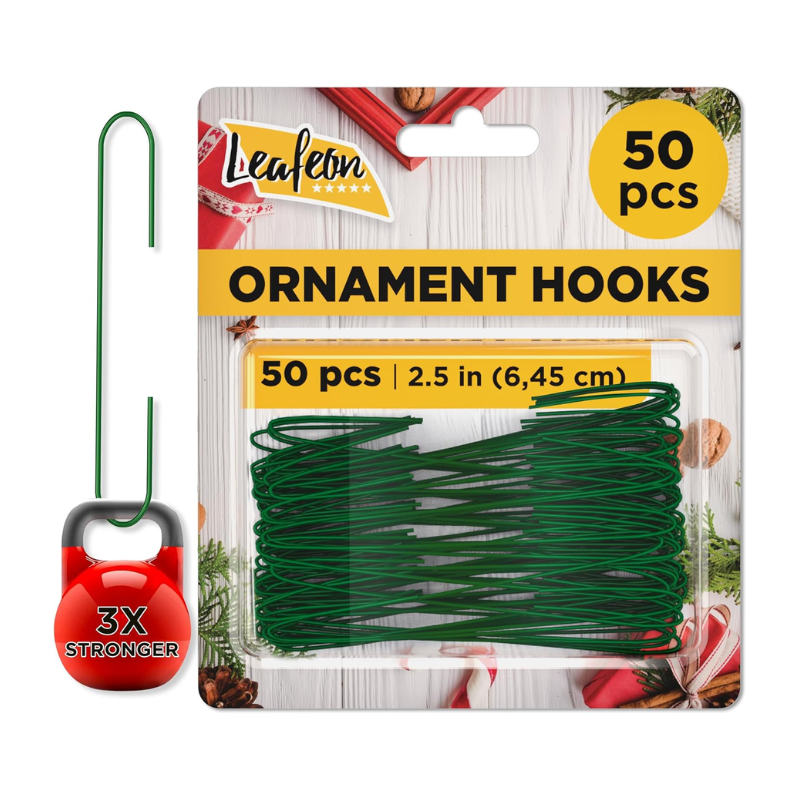 🎄 INCLUDES: 50 Green Metal Ornament Hooks. It is a perfect amount for the Christmas decoration. It is a set of 50 pcs ½” Green Metal Ornament Hooks.