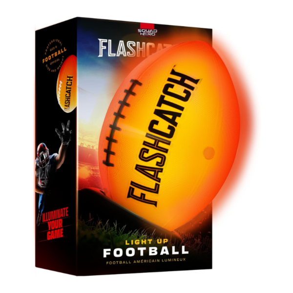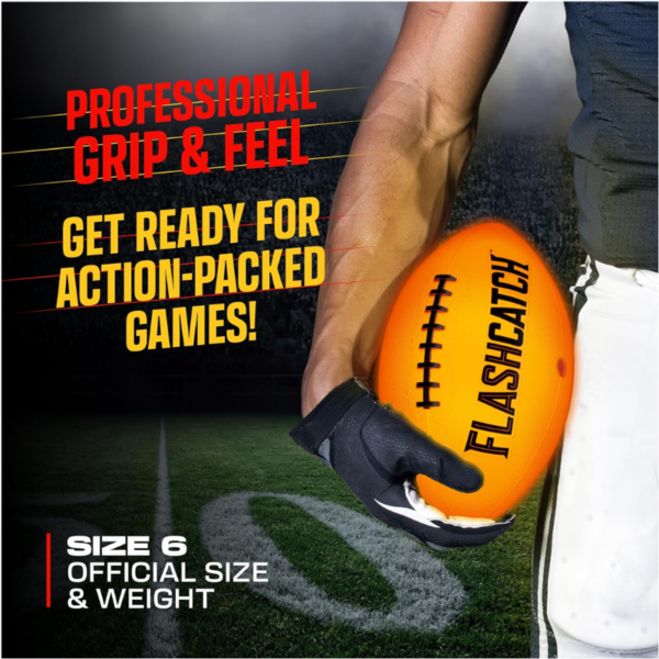 LIGHT UP THE FIELD: Watch the FlashCatch Football light up with every catch and throw, making your game come alive with vibrant LED lights that automatically turn off after play. Take your game to the next level, even on the darkest nights – the new way to play after the sun goes down.