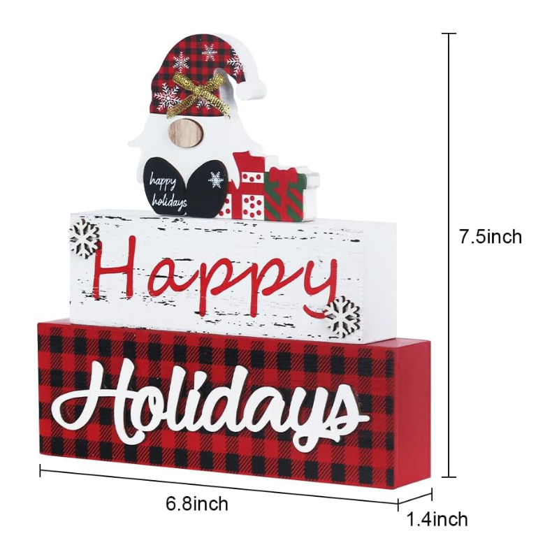 This wooden Christmas decoration features a delightful gnome design, complete with snowflake motifs and red and black buffalo check patterns. With the words “Happy Holidays” written on the bottom, this wooden decoration carries a heartwarming holiday message. It serves as a reminder of the joy and love that surround the holiday season, making it a perfect gift for spreading cheer and goodwill to friends and family. Spruce up your home with our enchanting Christmas decorations that will instantly bring the holiday spirit to any room. With dazzling colors and delightful elements, our decorations are perfect for creating the ultimate Christmas atmosphere in your living room, bedroom, kitchen, dining table, bookshelf, coffee table, or fireplace.