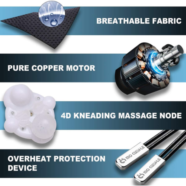 8 Powerful 4D Deep-Kneading shiatsu massage nodes Bi-directional rotating to improve the blood circulation and loosen back, lower back, neck, shoulder, leg, foot pain, and tight muscles. Back massager is a perfect choice as gifts for holidays, birthdays, graduations, Thanksgiving Day, Christmas, and special occasions.